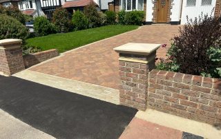 New Tegula Block-Paved Driveway with Limestone Edging and Brickwork